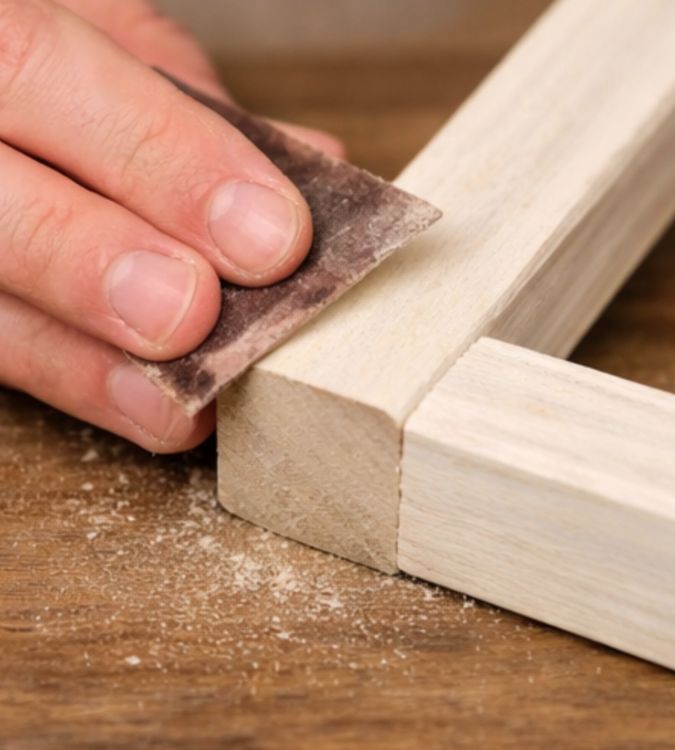 Begin by sanding down any rough edges on the wooden frames to ensure they are smooth to the touch.