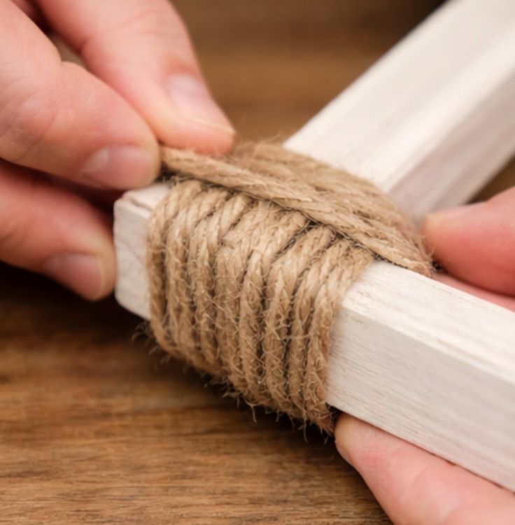Once the glue is dry, reinforce each corner by wrapping jute twine or strong string around them several times, creating a decorative knot. This adds both stability and decorative flair.