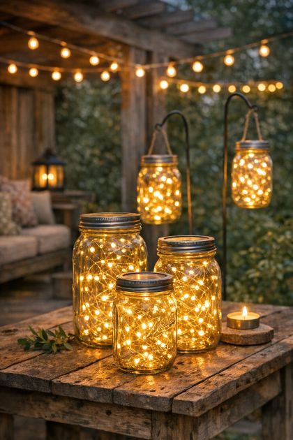 Creating a warm and inviting atmosphere in your outdoor living space can significantly enhance your home's ambiance. This DIY project involves transforming vintage glass mason jars into magical patio mood lighting by filling them with warm white fairy lights. This simple yet enchanting project is perfect for adding a touch of charm and elegance to your deck, making evening gatherings even more memorable.