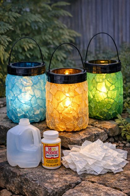 Transform your backyard into an enchanting oasis with this simple yet stunning DIY project: glowing faux-glass outdoor lanterns made from everyday plastic milk jugs. This project not only recycles plastic waste but also adds an ethereal glow to your outdoor spaces. The simplicity and affordability of this DIY make it accessible for everyone looking to add a magical touch to their garden or patio.