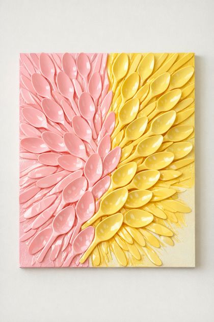 Transform everyday items into stunning home decor with this fun and creative DIY project. By melting brightly colored plastic spoons and combining them with another simple dollar store item, you can craft a unique piece that adds a pop of color and modern flair to any room. This easy and budget-friendly project is perfect for anyone looking to add personal touches to their living space.