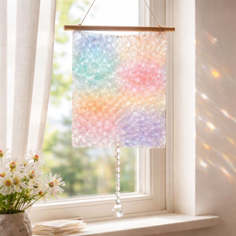 This DIY art piece can be styled in modern and minimalist interiors. Its translucent and textured nature offers a subtle yet elegant aesthetic, making it perfect for a neutral-toned room. Consider placing it on a mantel or hanging it as a standalone wall art piece. It pairs well with natural elements like wood and stone, enhancing its organic feel.