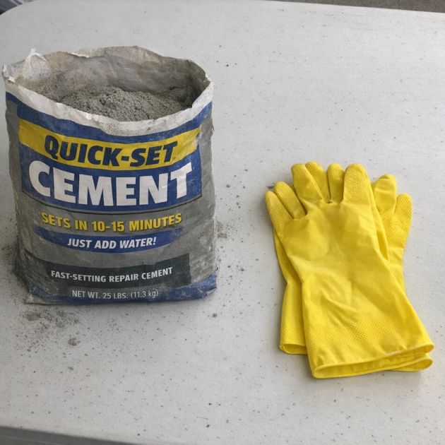 Prepare the quick-set cement mix according to the instructions on the package.