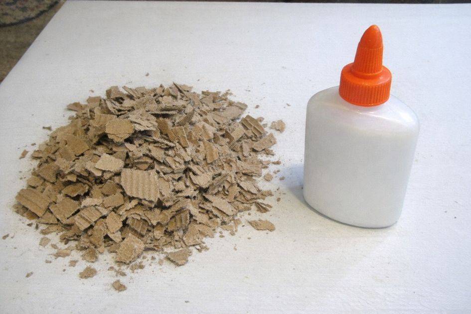In a large mixing bowl, combine the damp cardboard with 1 cup of white glue and 1 cup of joint compound, mixing thoroughly until you achieve a consistent paste.