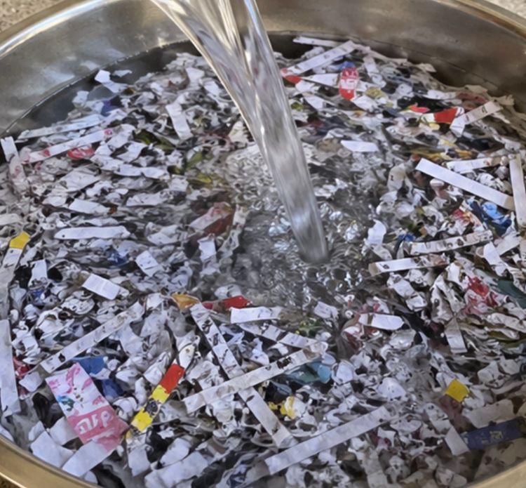 Pour enough water over the paper to fully submerge it and let it soak for 24 hours.