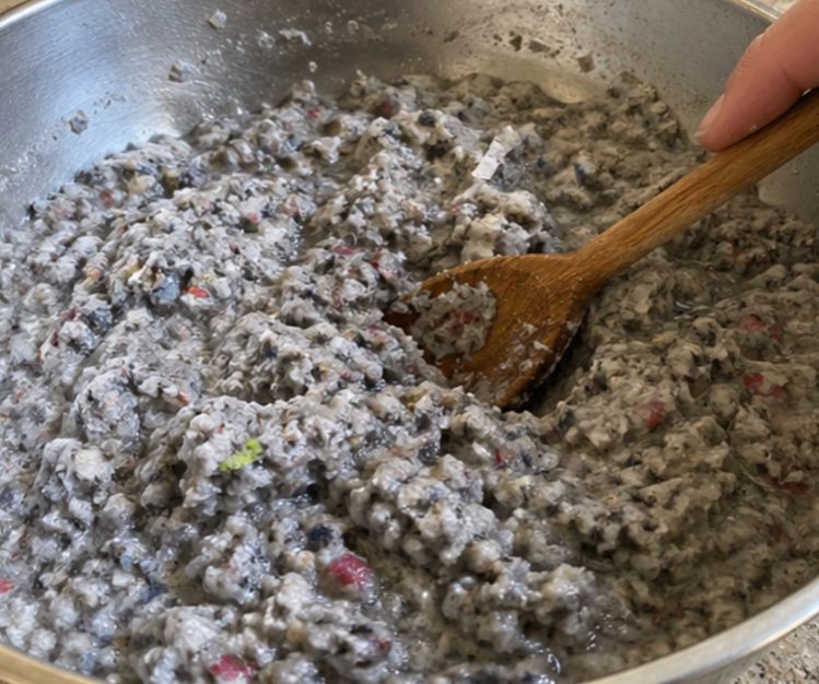 After soaking, use an old wooden spoon to stir the paper, breaking down any clumps until it forms a consistent pulp.