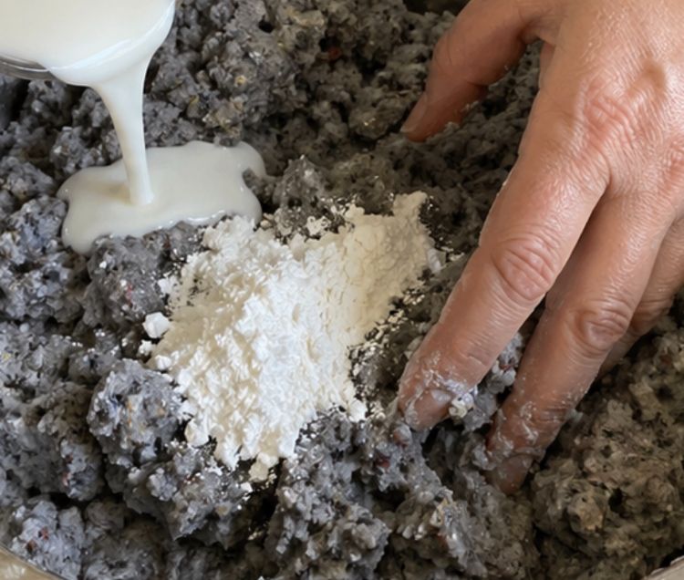 Add 1 cup of white glue and 2 tablespoons of cornstarch to the pulp and mix thoroughly until you achieve a sticky, dough-like consistency.