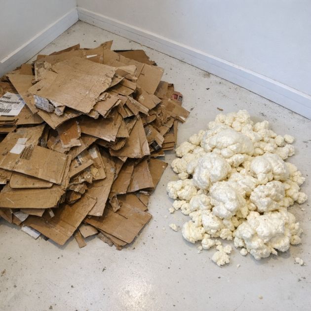 Crushed cardboard boxes (approximately 2-3 medium-sized boxes)