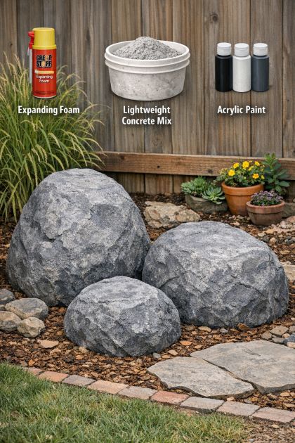 3-Material DIY Faux-Concrete Backyard Boulders