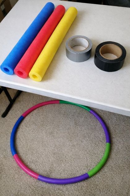 Carefully cut the pool noodle into thick rings using sharp scissors.