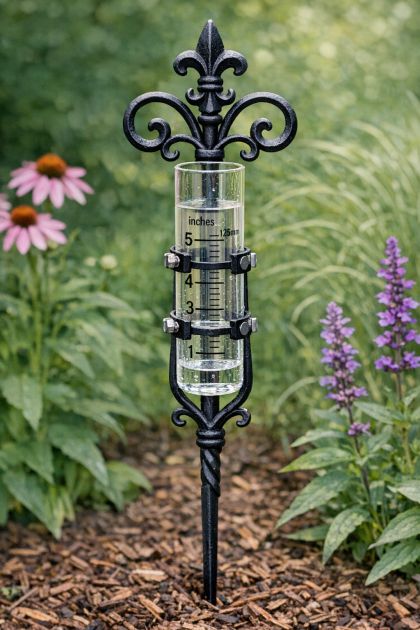 Decorative Iron Stake Rain Gauge Holder