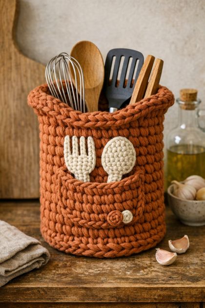 DIY Crochet Sculptural Kitchen Utensil Holder