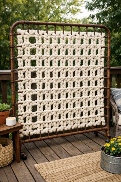 Upcycle an old crib into a stunning patio privacy screen using crochet. This project is a creative way to repurpose furniture, adding charm and functionality to your outdoor space. By combining the rustic appeal of a vintage metal crib frame with the soft texture of crocheted yarn, you can craft a unique piece that offers both privacy and aesthetic appeal.
