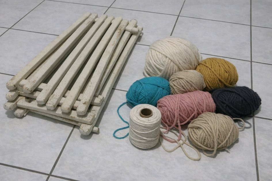 7. Adjust the tension of the yarn, ensuring it is evenly distributed and taut across the frame.