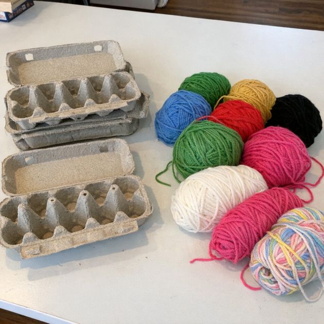 5. Continue crocheting over the cartons until they are completely covered with yarn. Add additional rows if necessary to strengthen the structure.
