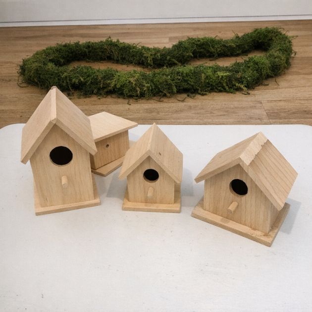 For a different look, consider painting the birdhouses in pastel colors before wrapping them with moss, adding a pop of color to the decor. Alternatively, add small faux flowers or butterflies to the moss for a touch of whimsy. If you prefer a more minimalist design, use a lighter moss and keep some of the wood exposed for a more natural look. You can also experiment with different sizes or shapes of birdhouses to create a custom design that suits your style.