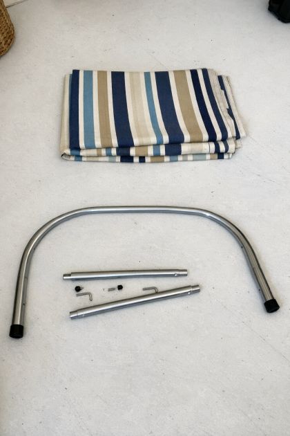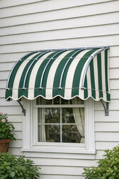 This DIY window awning can be used to add a touch of elegance and color to your home's exterior, complementing the overall architectural style. The striped canvas offers a classic look that pairs well with a variety of home designs from modern to traditional. Consider matching the fabric color to other outdoor decor elements, such as patio furniture or garden accessories, to create a cohesive look.