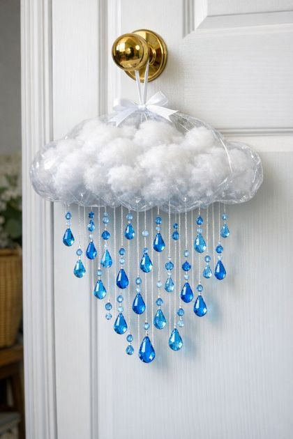 Creating a DIY rain cloud door hanger is a serene and whimsical way to add a touch of creativity to your home decor. This project is perfect for those who love unique home accents and want to bring a playful element to their entryway. The combination of a cloud-like form and dangling crystal raindrops captures the essence of a gentle rain shower, making it a delightful conversation starter for guests.