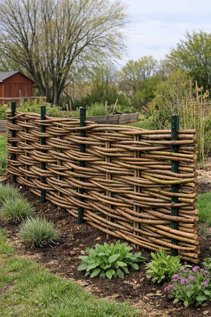 Incorporating this DIY willow fence into your backyard can enhance the natural landscape and provide a seamless blend between your garden and outdoor space. The rustic design complements a variety of garden styles, from cottage gardens to minimalist spaces. Using natural willow branches as a primary material brings an organic element to your design, highlighting the beauty of your garden's flora.
