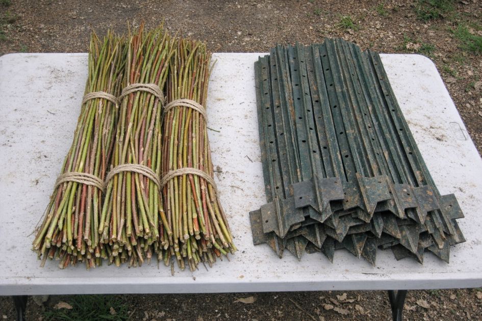 Select flexible willow branches that are long enough to weave through the T-posts. Trim any excess leaves or smaller branches using pruning shears.