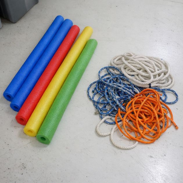 Take the thick natural jute rope and begin wrapping it around the woven pool noodles. Start at one end and work your way around, covering the noodles completely. Make sure to leave some gaps for a natural, rustic appearance.