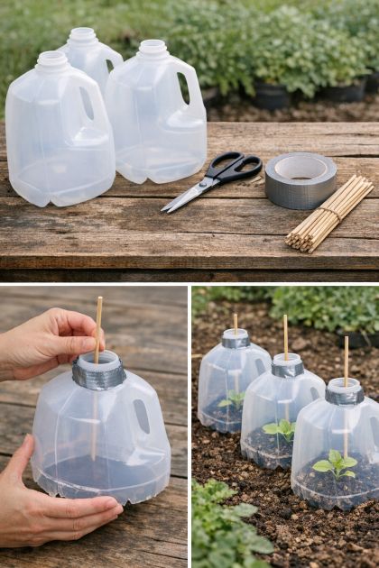 Creating a simple and effective greenhouse cloche using plastic milk jugs is a great way to extend your gardening season. This DIY project transforms common household items into a practical tool that helps protect plants from cold weather, facilitates early planting, and encourages faster growth by maintaining warmth and humidity around the plants.