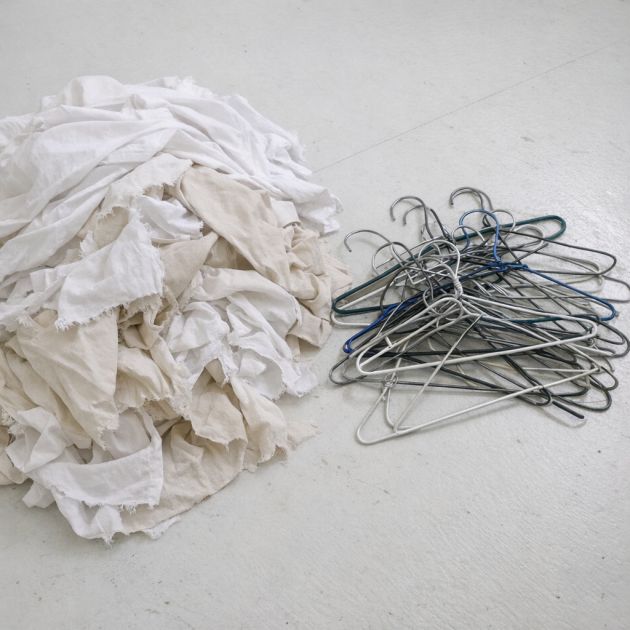 2. Unwind the wire hangers and straighten them out. Carefully twist them together to form a thick, flexible wire base.