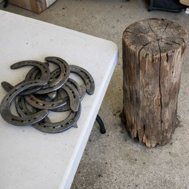 For a personalized touch, consider painting the horseshoes in vibrant colors to match your garden theme or add a protective sealant to the cedar post to enhance its durability against the elements. Alternatively, use reclaimed barn wood for the post to further emphasize a rustic look. For added functionality, incorporate hooks or small shelves on the post for storing gardening tools. Ensure all metal parts are treated to resist rusting, particularly if exposed to frequent watering.