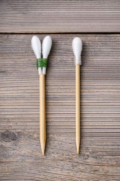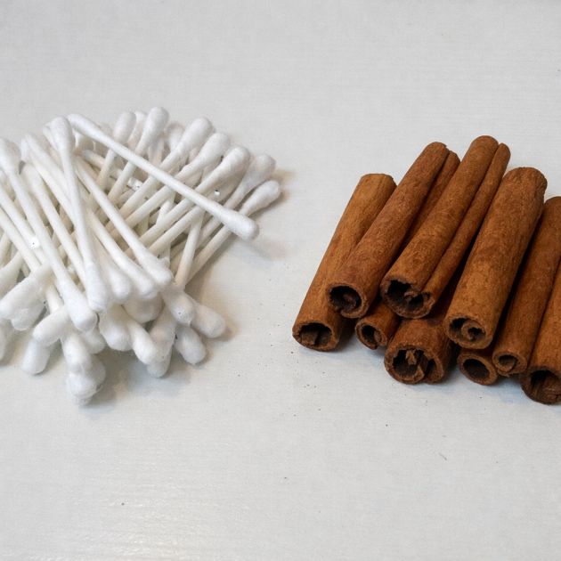 3. Take one cotton swab and gently roll the cotton end in the cinnamon, ensuring an even coating of the spice on the surface.