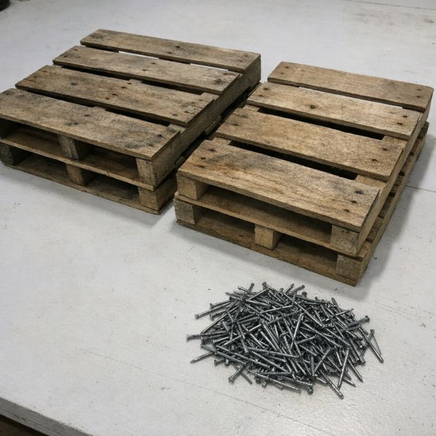 Disassemble the two pallets using a saw and remove any nails.