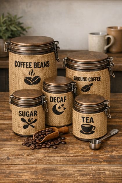 Burlap Wrapped Coffee Can Storage Set
