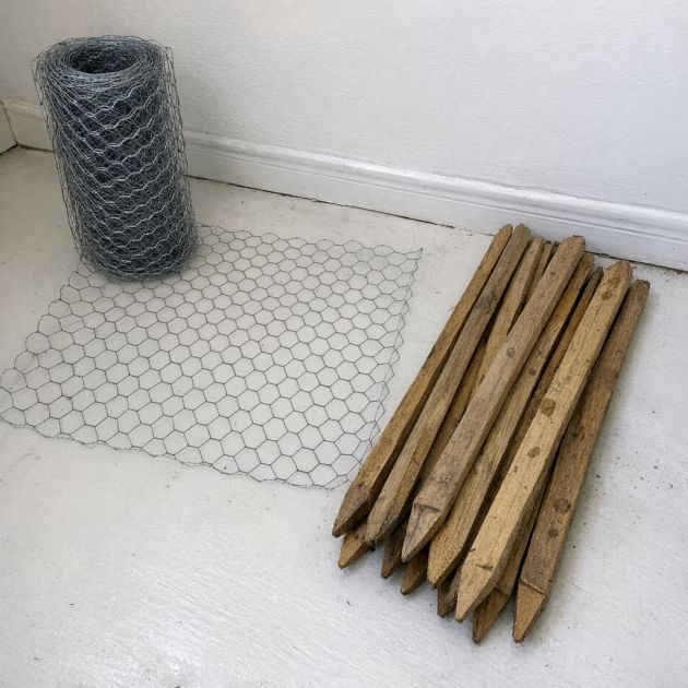 For a more personalized touch, consider painting the wooden stakes with weather-resistant paint in a color that complements your garden's theme. Alternatively, use decorative finials on top of the stakes for added elegance. To accommodate larger plants, adjust the spacing between stakes and use a wider chicken wire. These variations maintain the core structure while allowing customization to suit different garden aesthetics.