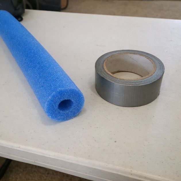 Cut each pool noodle into 1-inch thick slices using a craft knife. You should have an equal number of slices from each color.