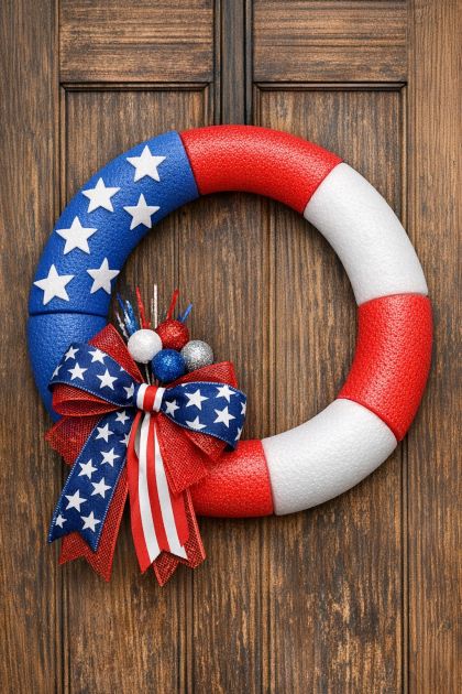 Transform ordinary pool noodles into a stunning patriotic wreath that's perfect for holiday celebrations or adding a touch of Americana to your decor. This DIY project is affordable, easy to make, and offers a creative way to upcycle summer essentials into beautiful home decorations. The result is a vibrant, eye-catching wreath that will make a bold statement on any door or wall.