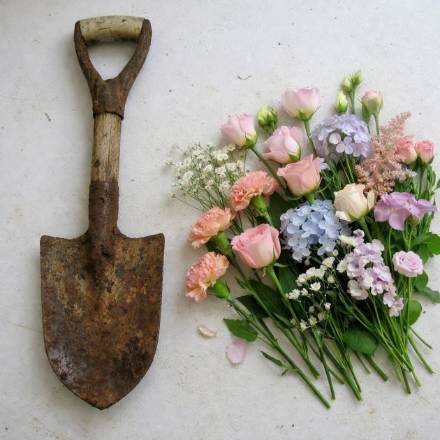 Rustic Floral Garden Spade Swag