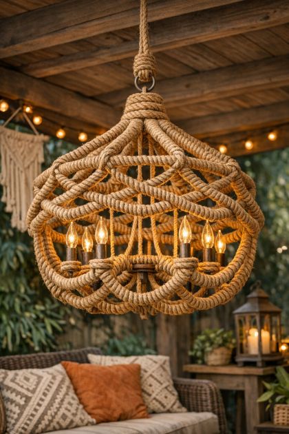 Rustic Hemp-Wrapped Patio Chandelier