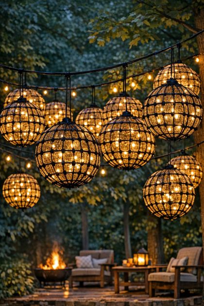 Transform your porch with oversized rustic globe string lights made from weaving cheap wire wastebaskets with heavy black zip ties. This creative DIY project not only repurposes inexpensive materials but also adds a unique, cozy ambiance to any outdoor space. Enhance your porch with these stunning lights that mimic designer pieces at a fraction of the cost.