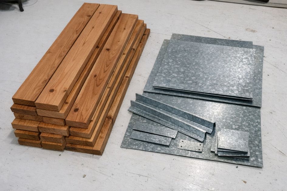 1. Measure the width of the steel frame and cut the cedar planks to fit, if necessary, ensuring each plank can be laid across the frame with a slight overhang on each side.