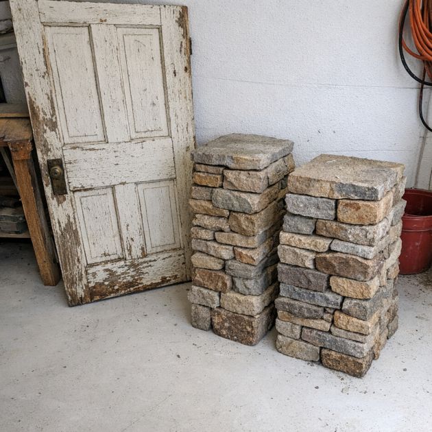 3. Position the two stone pillars on your porch, ensuring they are spaced evenly according to the length of the door.