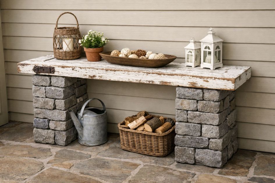 Transforming your empty porch wall into a functional and stylish outdoor console table is a simple and rewarding DIY project. This project not only provides a perfect spot for decor and storage but also enhances the aesthetic appeal of your outdoor space. By using a reclaimed door and stone pillars, this DIY combines rustic charm with sturdy elegance, making it an ideal addition for homeowners looking to add character and practicality to their home exterior.