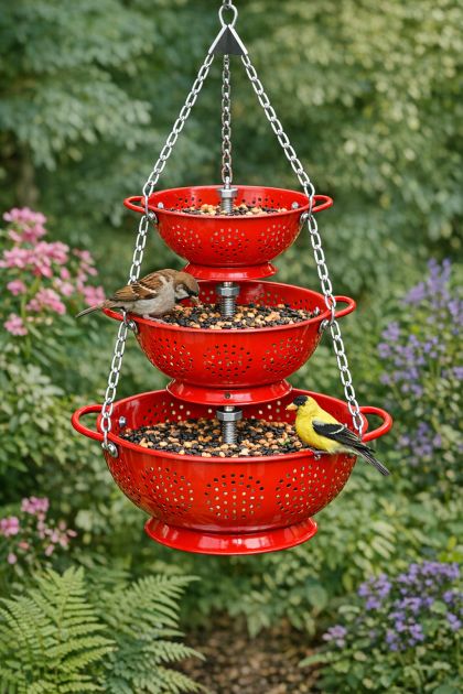This DIY project transforms old metal colanders into a stunning tiered bird feeder that not only serves a practical purpose but also adds an artistic touch to your garden. By repurposing these everyday kitchen items, you create a unique and functional piece that attracts birds and sparks conversations with neighbors. This is a sustainable way to breathe new life into items that might otherwise be discarded.
