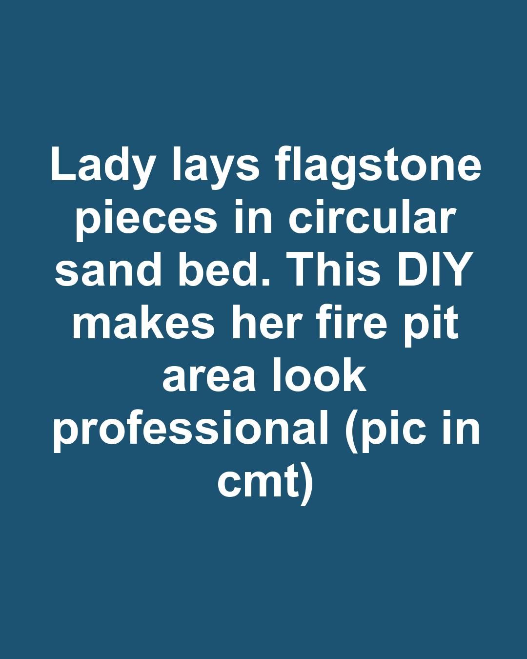 Lady lays flagstone pieces in circular sand bed. This DIY makes her fire pit area look professional