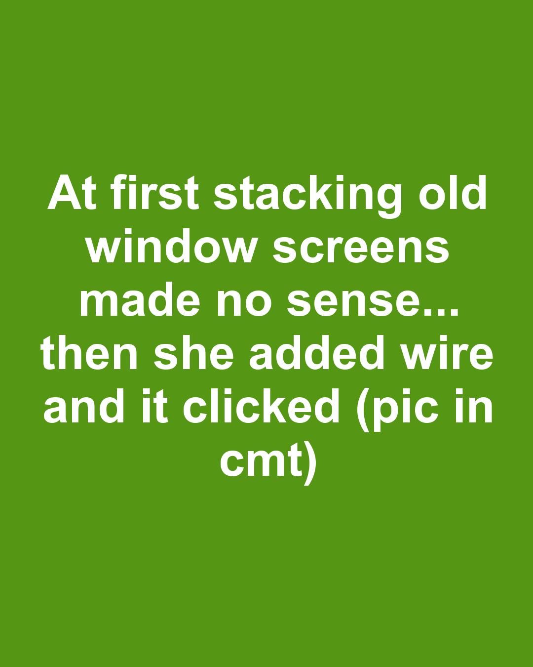 At first stacking old window screens made no sense... then she added wire and it clicked