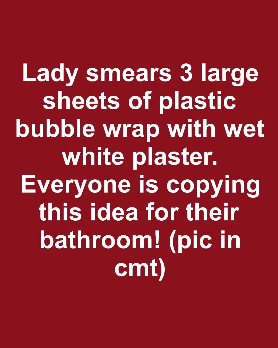 Lady smears 3 large sheets of plastic bubble wrap with wet white plaster. Everyone is copying this idea for their bathroom!