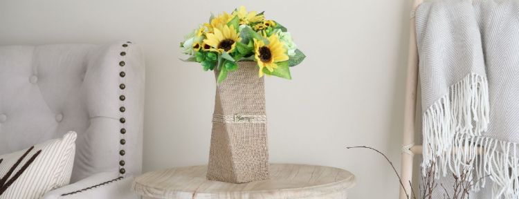 Fresh flowers are one of the easiest way to create a cheerful atmosphere in your home, but you need a way to display them. There's nothing wrong with a plain glass vase, but this burlap-wrapped vase is much nicer.