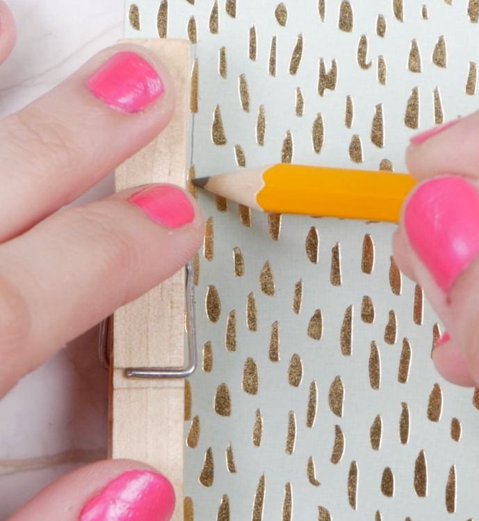 1. Place a clothespin onto one type of decorative paper, then trace around it using a pencil.