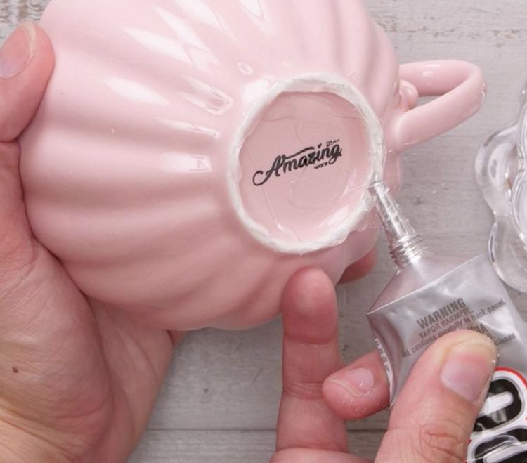 1. Put E6000 glue around the bottom of the teacup.