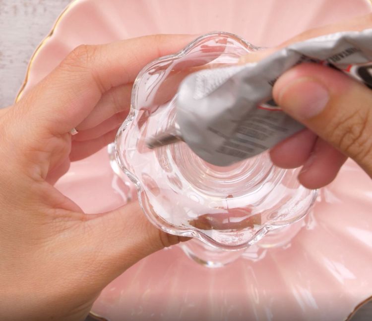 2. Add glue to the bottom of the candleholder.