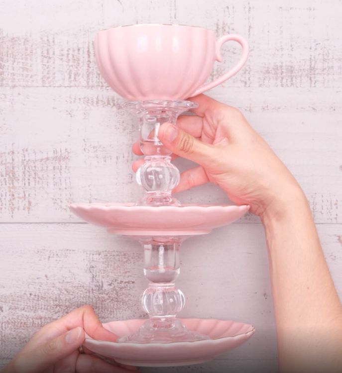 Who says tea parties are only for children? Gathering together a few friends for a warming cup of tea and some sweet treats is a pleasant way to pass an afternoon. This tiered tray made from teacups is a darling addition to a birthday party, wedding shower or a "just because" garden party. Fill it with macarons and meringues, then invite your pals over and enjoy!