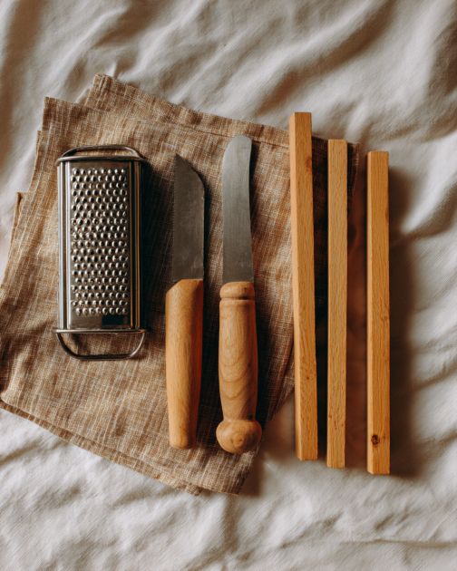 Position a cheese grater on top of each wooden stake, making sure the open end of the grater faces upwards.